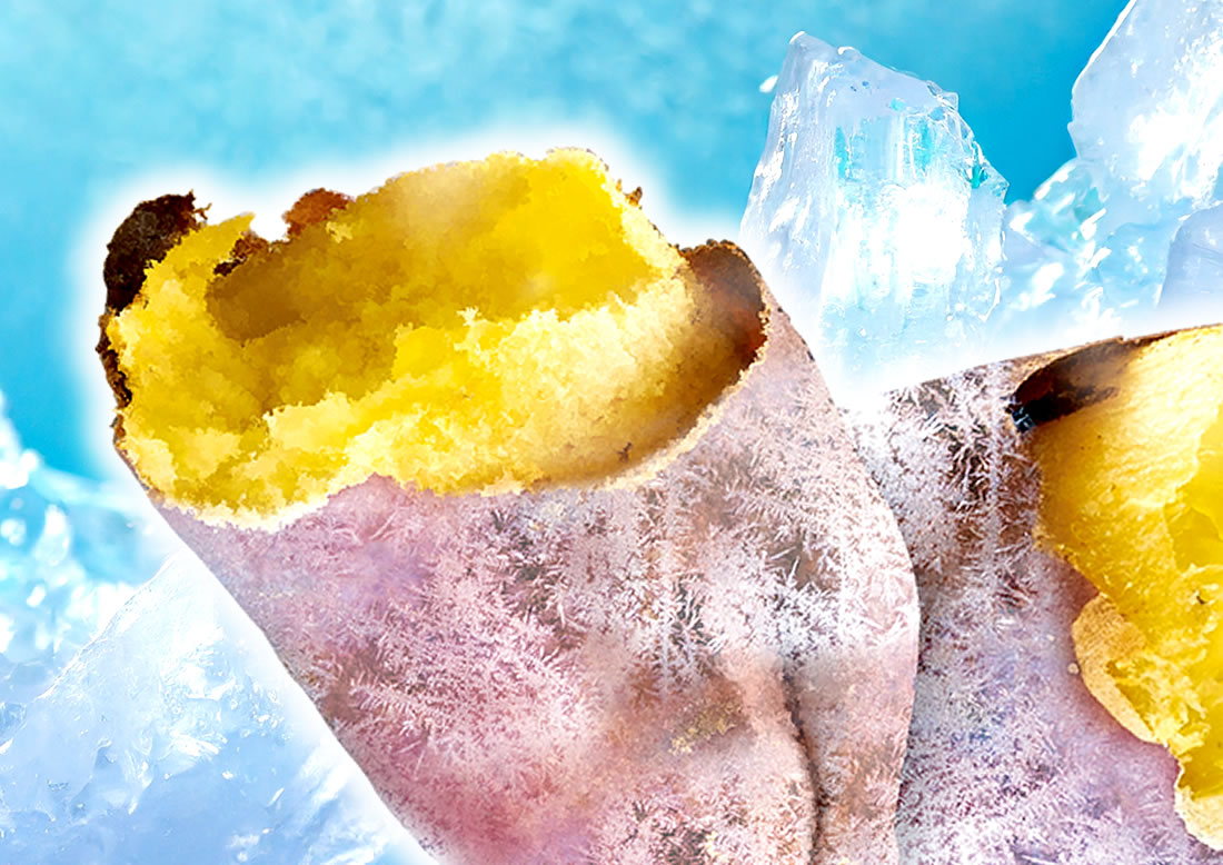 焼き芋は時間が経つと風味が劣化します。そこでアファームの焼き芋は、最後の「焼き」が終わったらすぐに冷凍することで、さつまいもの美味しさをしっかりと閉じ込めます。
