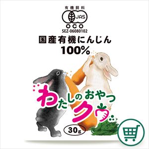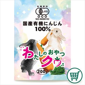 有機JAS認証を取得した国産有機のにんじんを100%使用しています。厳選されたにんじんは、農薬や化学肥料を一切使わずに育てられたもので、自然な甘みと風味が特徴です。うさぎが喜んで食べる、美味しさと安心感を両立させたオヤツです。